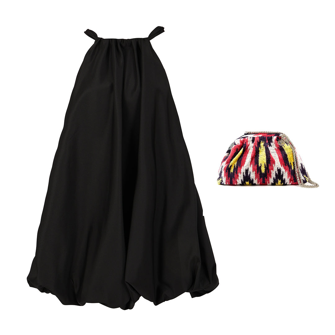 Parisienne Puff Halterneck Black Dress + Victoria Bag Set 3
