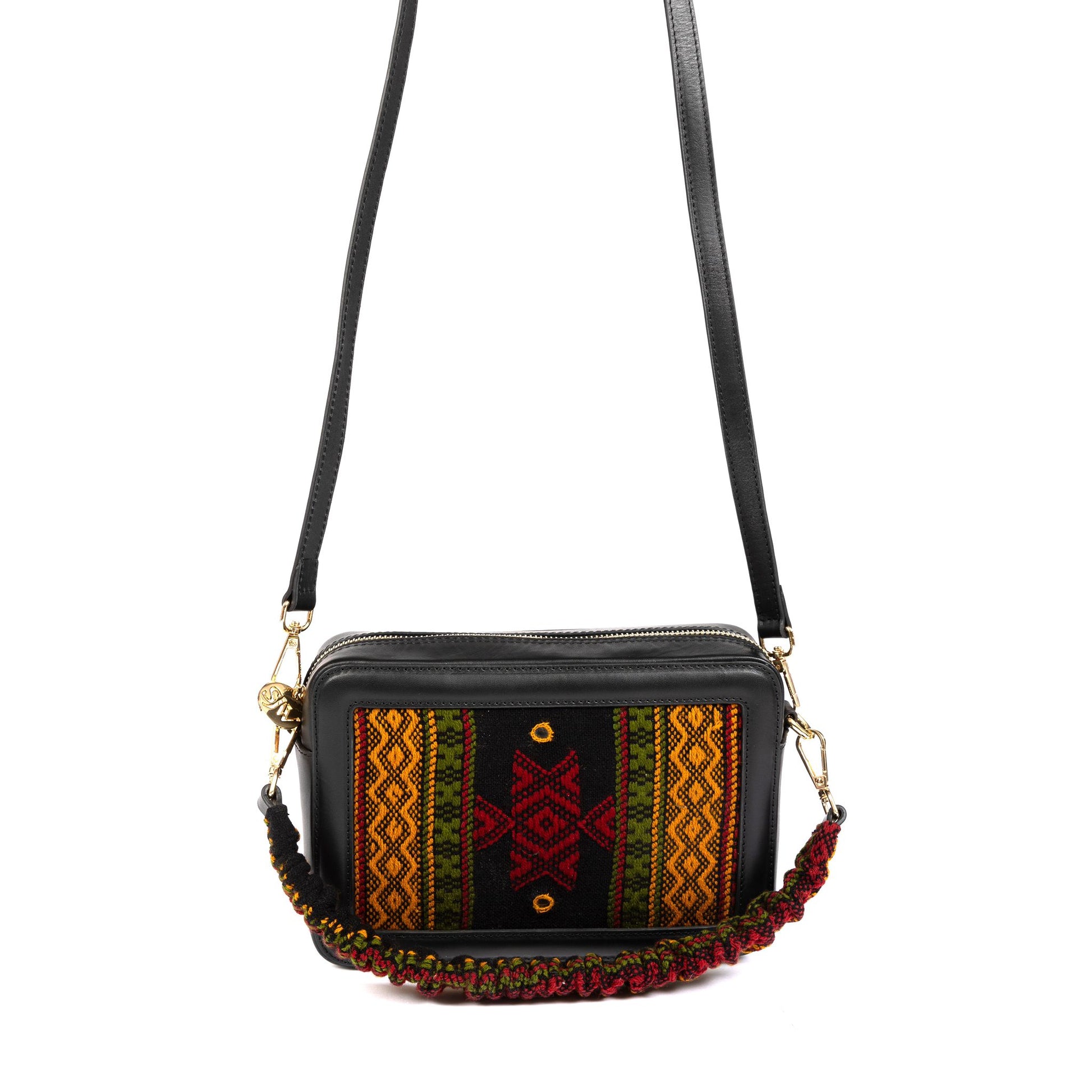 Perazzi Gujarati Woven Textile and Leather Cross Body Bag-Black
